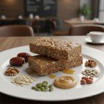 بار عسلی یک میانوعده ۵۰ گرمی است که پایهاش خرما و عسل طبیعی است؛ جوپرک ساختار و فیبر میدهد و کره بادامزمینی به همراه تخمهها و گردو، بافت و چربیهای مفید را تامین میکند. طعم کلی شیرین-ملایم و آجیلی است.